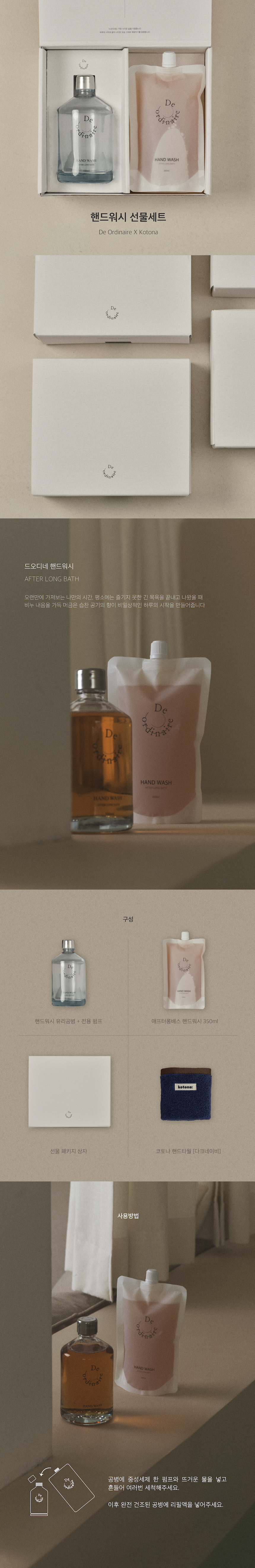 드오디네 애프터롱배스 핸드워시와 코토나 핸드타월 세트 상품